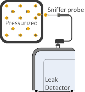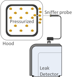 该方法将氦气充入被测工件内部,如存在泄漏,氦气将逸出并被检测。